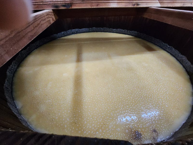 Fermentation is the process of convincing yeast (which is a fungus, neither animal nor plant) to ingest sugar and excrete alcohol. For whisky, the sugar comes from grain (Scotch whisky uses barley almost exclusively, but other kinds of whisky use other grains), and this phase of the process is all about bringing the sugar of the barley out into a form where the yeast can do its thing.
