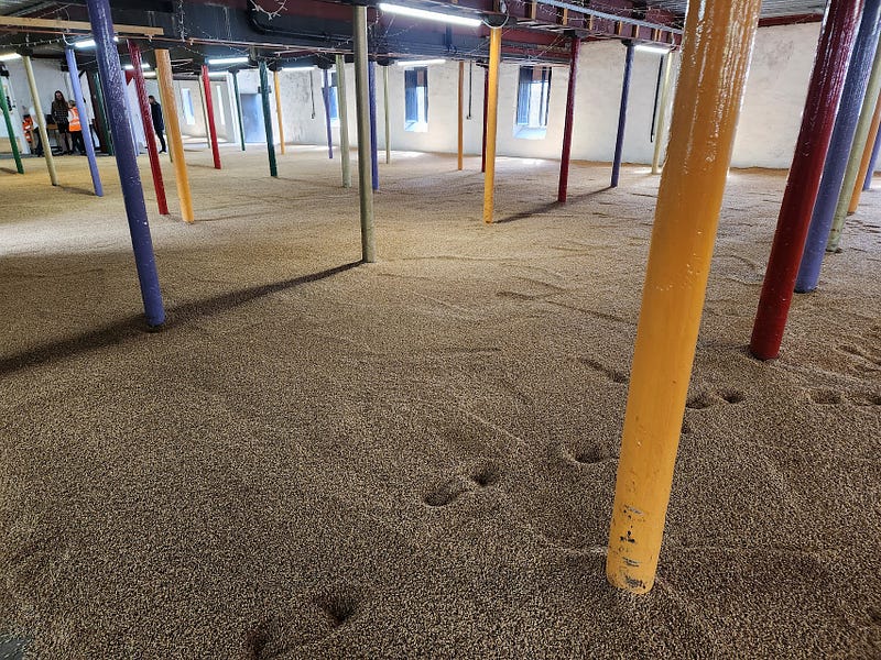 Drying the grain stops it from sprouting any further, keeping it stable and arresting it at that specific phase of sugariness. It can be dried either with hot air, which just dries it, or with peat, which both dries it and leaves it with a smoky flavor.
