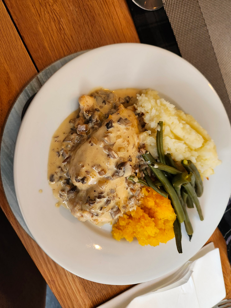 One standout was Balmoral Chicken, which is chicken stuffed with haggis covered in a whisky cream sauce. (Haggis are a savory sausage; they’re pretty good. They get a bad rap.)