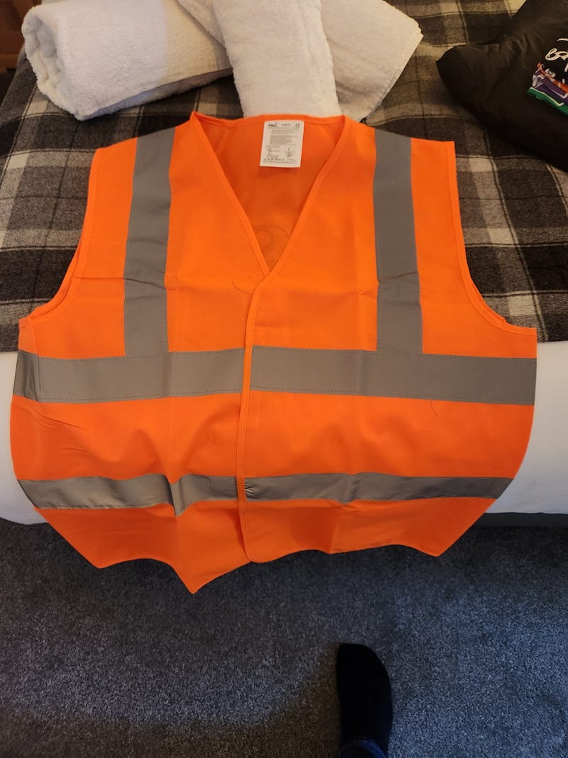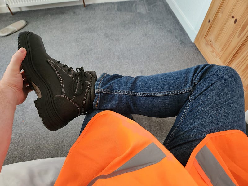 Our uniform was a branded t-shirt (optional), the high-visibility vest (required), and steel-toed boots (required, and the student has to provide their own).