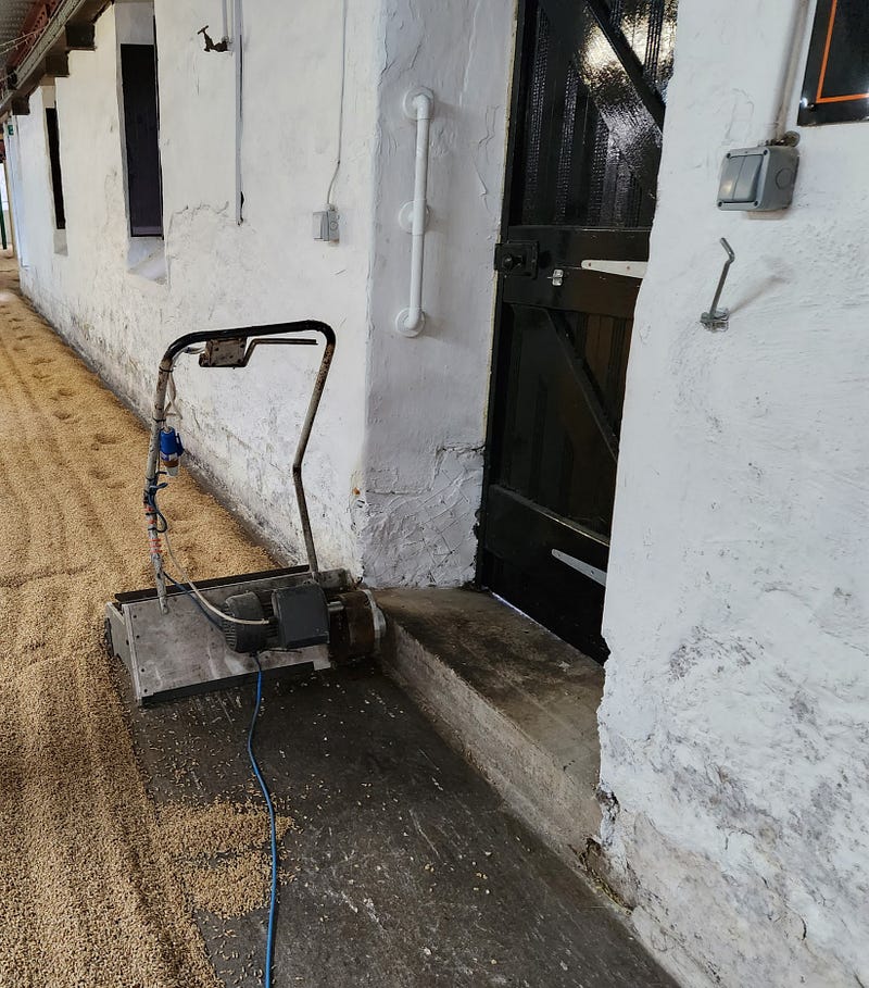 On the first day, I put on my steel-toed boots and high-visibility vest and we tromped across the street and around the corner to Springbank Distillery. We got a quick tour from the Distillery Manager, and were then sent to the malting floors.