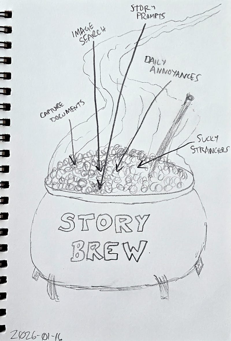 If I was out past my prompts or got a prompt that didn’t come alive, churning through my dreams might make something click. Dreams are your subconscious working through issues that preoccupy you, so they’re connected to emotional memories.